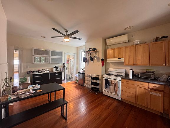 Available Sept 1. NO FEE. - Renovated, beautiful 4 BR apt, 4 minutes to T. - HUGE rooms, oversized new energy efficient windows. - 2 new bathrooms - Hardwood floors throughout, nice paint colors. - Huge eat-in maple kitchen with dishwasher, gas stove, fridge - New mini-split heating and cooling, silent and efficient with room by room control - Laundry in basement, hookups in unit - Parking for 2 cars - Large, lush backyard with pears, grapes, benches, and an olympic sized pool. I'm not even really kidding about the pool - it's literally right next door. - Shared off-street parking - Walk Score of 93, Walker's Paradise: Shopping, restaurants, book store, cafes, gyms, pool, bars, music, subway all within a 5 minute walk. Friendly and responsive landlord looking for responsible tenants. Email to arrange a showing. Owner pays for water. Renter is responsible for gas and electric. First and last month's rent due at signing. No smoking allowed.
