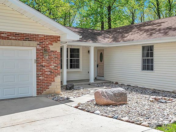 !!Back on Market - No Fault of Seller!! Must-See Ranch home on 1/2 Acre Lot in desirable Francis Howell School District!! Nestled on a private cul de sac street backing to woods in quiet park-like setting. Welcoming OPEN floorplan, vaulted great room, wood floors, custom woodwork, cozy fireplace and so many windows. Walk out to your large deck PERFECT for grilling, entertaining & relaxing morning coffee enjoying a gorgeous view of large lot. Roomy kitchen with custom cabinets, center island and breakfast bar with spacious granite counters. Master suite features large bath, jetted tub, separate shower & HUGE walk-in closet. Brand NEW carpet in all 3 bedrooms. The lower level has a media room with NEW carpet & CUSTOM shelving. Lower level also features 3rd bathroom, newer furnace (2021), a walkout with covered patio and newer stamped concrete walkway. Plenty of room downstairs to finish the rest and make it your own private retreat. Close to 364, Katy trail, parks, schools, and more!