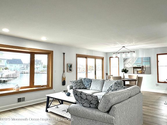 Nestled in arguably the most desirable neighborhood in north Ocean County, 18 Centerboard is a true 4 bedroom, 2.5 bath waterfront home with a full 2 car garage. Open water access, private dock with shore power, no bridge restrictions, buried utilities, sidewalks, wide lagoon, adjoining boardwalk park and voluntary HOA all add to this great community. Extensively remodeled by its owners as their primary residence in 2023, this home is now available due to relocation. Nearly every aspect of this home has been touched! The gourmet kitchen features an oversized bar-top peninsula, all new stainless appliances (including dishwasher, garbage disposal, 5 burner range with griddle, microwave and French door refrigerator), honed countertops and custom backsplash.