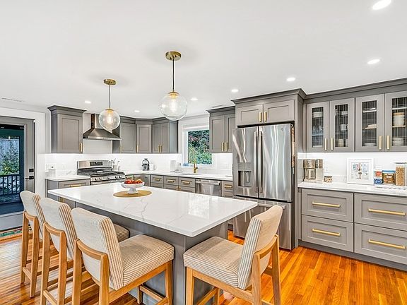 • Features: Flooring - Hardwood, Countertops - Stone/Granite/Solid, Countertops - Upgraded, Kitchen Island, Cabinets - Upgraded, Deck - Exterior, Exterior Access, Open Floorplan, Recessed Lighting, Remodeled, Stainless Steel Appliances, Gas Stove