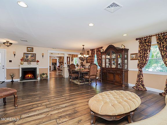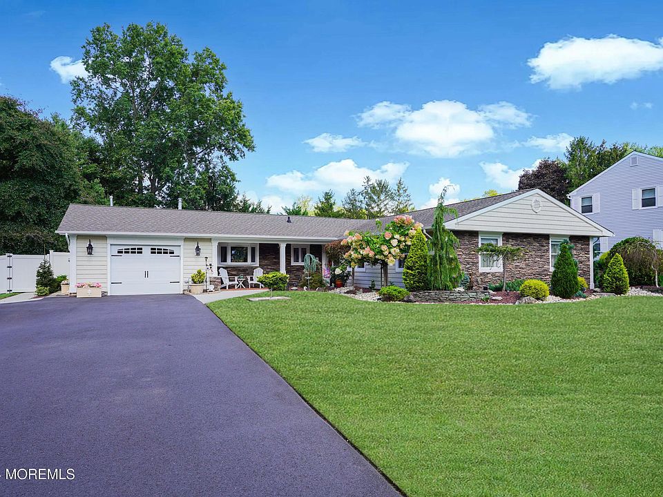 Unpack and move right into this beautifully renovated gem in the sought-after Monmouth Heights section of Manalapan, NJ! Featuring a redesigned open concept, this home boasts high-end upgrades throughout, including a new heating system, a modern eat-in kitchen, and stylishly updated bathrooms. The spacious living room and dining room showcase elegant wood flooring and a cozy gas fireplace. With 3 bedrooms and 2 baths, the master suite lounge offers flexibility to convert into a 4th bedroom, if desired. The front of the home is highlighted by refined stonework and a charming covered porch, while the backyard is perfect for entertaining with new paving stones and PVC fencing. The expansive 20,000 sq.ft. lot includes a full sprinkler system, refreshed landscaping, and a newly paved driveway. Located near award-winning schools and offering access to the Monmouth Heights Swim Club, this home combines comfort, elegance, and community living. Don't miss this exceptional opportunity!
