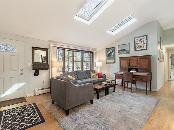 LOCATION and FLOOR PLAN - the winning combo. Soaring vaulted ceiling & open floor plan make this airy home extra desirable! Wide-open living room with fireplace opens onto the dining room and four-season sunroom with gorgeous woodland vistas. The kitchen is just about 5 years old, with abundant cabinet space, quartz countertops, garden window & skylights. The master bedroom is unusually large with double closets and an ensuite bath. The other full bath has been nicely updated. The location? Superb! A lovely private fenced yard abuts pretty woodlands ~ you are going to delight in the quiet and privacy found here! High-efficiency gas-fired heating system 2011. New carpets 1/2021. Come join this fabulous Maynard neighborhood. This house has a rich history of not lasting long in the marketplace, so don't delay in scheduling your private showing.