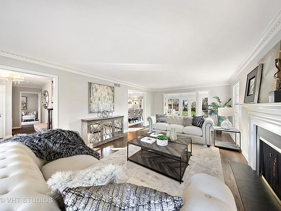 Luxurious living is all yours to enjoy at this home with the perfect blend of timeless elegance and the best in contemporary comfort and style. Even before stepping inside, the grand facade and manicured gardens allude to the stunning attention to detail that awaits through the front door. The layout has been expertly crafted for modern living with multiple living spaces, newly refinished dark walnut hardwood floors, and impeccable features throughout. Natural light is drawn in through the abundance of windows and skylights, ensuring this is a bright and sumptuous home that you'll never want to leave. All the living areas are generous in size, including the large dining room, breakfast room, and the family room with a tall vaulted ceiling and towering two-story fireplace. A wet bar will delight the avid entertainer while cooking for loved ones will be a joy in the gourmet kitchen, thanks to the high-end appliances, sweeping countertops, and center island. All six bedrooms are crafted for comfort and invite you to relax in after a long day. One bedroom is housed on the first floor and enjoys the added convenience of an adjacent full bathroom, and the primary suite is large, offering a walk-in closet and an opulent bathroom space. There's garage parking for four vehicles, including (2) two-car attached garages while the yard is fenced for privacy and immaculately maintained. All this is just a short walking distance to Elm Elementary School and Hinsdale Central High School for absolute convenience. Looking for a home that has it all? This impressive residence is sure to satisfy your senses, so come take a tour and experience it all for yourself!