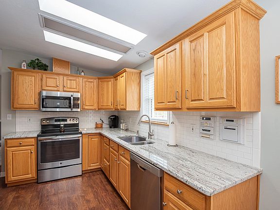 Granite village 55+ community. This impeccable home is ready for its new owners. As you enter the home from the attached garage you are welcomed with a 10' X 9' breakfast nook with oversized windows looking over the backyard. The kitchen has all updated appliances with an abundance of cabinets and counter tops, enough room all your family gatherings. The brightly lit kitchen opens into a dining room and living area both with newer flooring. The new double hung windows through out the home provide natural lighting and are energy efficient. The primary suite with a walk in closet is off the kitchen, while the second bedroom is located at other end of home providing privacy for family and guest. The new Pella slider off the dining area leads to the 12' x 12' deck with beautiful views of treetops and beyond. The back yard provides a custom brick pathway that leads to the back door of garage for easy entry. On demand generator and central a/c are included with many more upgrades. Sorry no dogs allowed in park.
