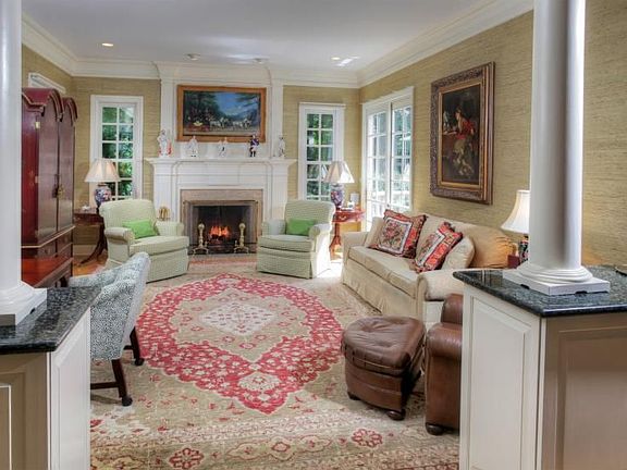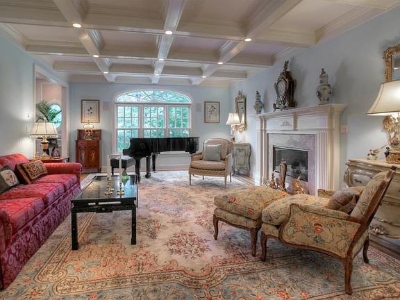 Stately home and true stucco home situated on almost 1.5AC of professionally landscaped park-like grounds w/2 bluestone terraces, perennial gardens & flowering trees & shrubs. Fine architectural details highlight this 11-rm home both inside & outside. A grand two-story Entry Foyer w/sweeping staircase opens to the Living Room w/handsome coffered ceiling & raised-hearth fireplace. The formal Dining Room has beautiful wainscoting & inlaid wood floor.The two-story Library offers custom built-ins.The step-down Family Rm showcases a custom fireplace & door to terrace. A Country Kitchen, updated in 2019, is the heart of the home w/center island, dining & desk areas, breakfast bar, high-end appliances & door to expansive terrace. Heated garage. New Roof 2019.