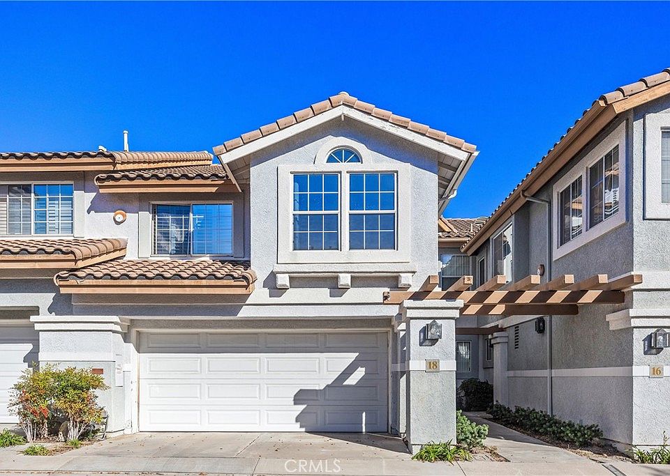 This delightful 3 bedroom, 2.5 bath townhome in the gated Mirasol community of Mission Viejo is move-in ready. Enter into the inviting living room with bamboo flooring, new window coverings, fireplace and cathedral ceilings that complement the open floorplan. The kitchen is well appointed with granite-look Staron counters, custom tile backsplash, stainless appliances, breakfast bar, and opens to the family room featuring a two-way fireplace, and sliding doors to the backyard. A powder room and storage closet complete the downstairs. The primary bedroom features vaulted ceilings, plantation shutters, a walk-in closet, and an en-suite bathroom with dual vanities, jetted soaking tub and a walk-in shower. The secondary bedrooms are generously sized and share the adjacent full hall bathroom. Convenient two-car attached garage with direct access to the home. Enjoy the private, enclosed backyard patio plus the nearby community pool and spas as well as Lake Mission Viejo privileges and no Mello Roos!