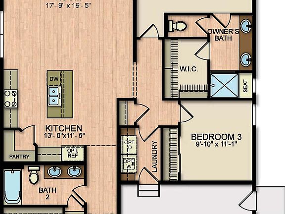The Maple is a cozy ranch home featuring 3 bedrooms, 2 bathrooms, and extended Luxury Vinyl Plank flooring throughout the main living area. You'll love the spacious owner's suite that features a large walk-in closet! Best of all, the Maple has a secondary bedroom close to the owner's suite, making it the perfect spot for a nursery! This home has everything a young family could need. Prices, plans, and terms are effective on the date of publication and subject to change without notice. Depictions of homes or other features are artist conceptions. Hardscape, landscape, and other items shown may be decorator suggestions that are not in the purchase price and availability may vary.