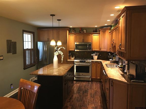 Check out this Move In Opportunity!!! 4 Bedrooms with amazing kitchen, 3 season room, stamped concrete patio for relaxing/entertaining, and much much more all on a quiet friendly street. Hardwood floors throughout. Close to schools, shopping, and thruway. Solar Panels Included and lease transfers at closing. Stove and Microwave Negotiable.