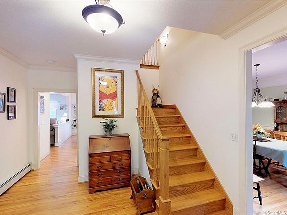 Johnnycake Mountain's Cider Mill Estates proudly presents this custom-built Colonial. Nestled in a private setting on a cul-de-sac street. As you approach the home, you will be invited by the classic lines of this beautiful home. Upon entering, you will be greeted by 9 foot ceilings, gleaming hardwood floors and beautiful millwork in the framed doorways, double crown molding and chair railing. The formal living room is framed by French doors opposite the formal dining room which offers traditional chair railing. The large eat-in kitchen boasts a center island, granite counters and a large pantry for ample storage. Just off the kitchen is the mud room "drop zone", a butler's pantry and access to the garage. The kitchen opens into the family room separated only by a half wall. Enjoy the wood burning fireplace and beautiful views of the landscaped grounds. Upstairs is a decadent master suite with a tray ceiling, French doors that lead to a separate room - perfect for a nursery, gym or an in-home office. His/her closets and a lavish master bath with a Jacuzzi tub, separate shower and double vanity area. Plus 3 additional bedrooms each of which have their own bathroom(s. Laundry is also on the upstairs level. The three-season screened porch opens to a very large deck. Whether you are playing ball games or gardening, you will enjoy this tranquil and private setting with 3.59 completely flat/usable land. Only minutes from main routes and shopping. An entertainer's delight.