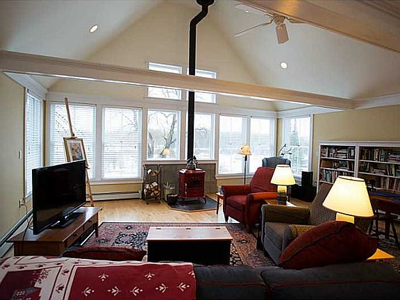 Often admired this in-town home is finally available for sale! Extensively remodeled home features stunning hardwood floors throughout, a main level master suite, main level laundry, large Great Room addition with a wood stove, a wall of windows, built in shelves and surprising in town views! An attached, two bay garage provides direct entry and easy access. Updated kitchen with cherry cabinetry and a gas range. Formal dining room and a formal living room offer the space to gather and entertain!