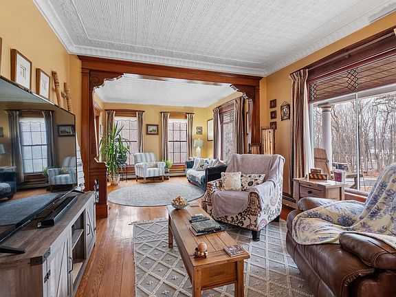 Step into a timeless masterpiece in the heart of Lakeport, Laconia, where history meets modern convenience. This exquisite 1870 Antique Colonial showcases ornate woodwork, leaded glass windows, and rich tiger wood and original hardwood flooring. Nestled between Lake Opechee and Lake Winnipesaukee, this home offers breathtaking views of Opechee Bay. Natural light pours through stained-glass windows, illuminating grand rooms with tin ceilings, intricate chandeliers, and elegant woodwork with exquisite details. Cozy up by the pellet stove or fireplace and admire the ornate hearth in the inviting formal dining room, or retreat to the built-in reading nook. A classic storybook banister leads upstairs to four bedrooms and bathrooms, including a nostalgic clawfoot tub. Meticulously maintained and thoughtfully updated, this home features a refreshed kitchen, remodeled bathrooms, beautiful wood floors, improved energy efficiency, and updated sewer lines. Step outside to enjoy the manicured landscape with perennial gardens, fruit trees, a screened porch, patio, and a luxurious inground pool. The 1.43-acre property includes a separate 0.60-acre buildable lot with public utilities, perfect for a single-family home or duplex. Ideally located near the Lakeport Opera House, top restaurants, entertainment, and three major marinas on Lake Winnipesaukee. Minutes from Gunstock Ski Area and endless outdoor recreation. Showings by appointment only—schedule yours today! Delayed showings until 4/4