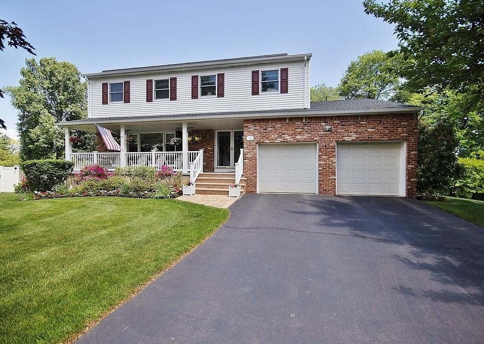 Enjoy cozy evenings in the inviting family room with a wood-burning fireplace framed by a granite surround. The primary suite offers a walk-in closet and private vanity area, providing the perfect retreat. Entertain effortlessly with two sets of sliders leading to a backyard oasis, including an oversized deck with lights, a patio area, and a sparkling in-ground pool complete with a slide. A handy shed provides extra outdoor storage.