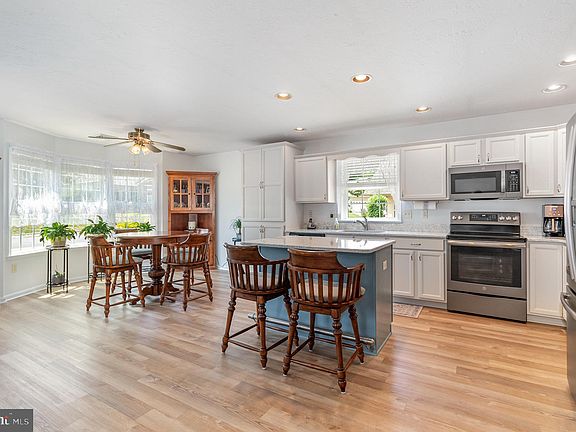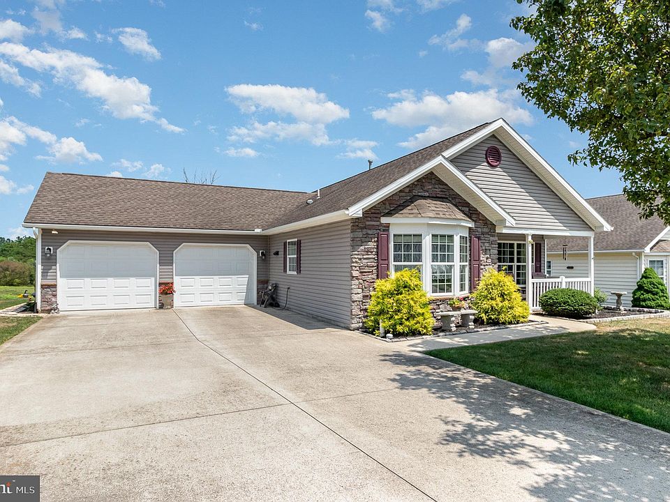 Welcome to your new home in the sought after 55+ gated community of Country Manor! This immaculate two-bedroom plus den ranch features new luxury vinyl plank flooring, a bright & airy remodeled kitchen boasting beautiful quartz countertops & eating island, stainless steel appliances, double sink and pantry. The dining area, filled with natural light from ample windows, compliments the inviting living room with gas fireplace. French doors lead to a den which could be a third bedroom. Primary bedroom has walk-in closet and ensuite bath with both a soaking tub & walk-in shower & solid surface counters. Second bedroom is great for guests. Seller is meticulous & pride of ownership is evident. Enjoy mornings on the cozy front porch and evenings on the stunning covered back patio, complete with a swing and serene views of the gardens and meadow. The oversized two car garage provides ample space for storage, workshop & has attic access. Shed at rear of home conveys. This home combines comfort and easy one level living! No matter how you look at it...THIS IS HOME!!