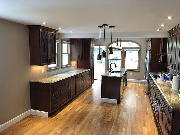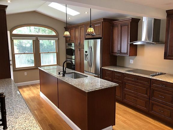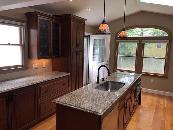 Make this bright, updated 4 bedroom, 2 bath colonial home! The first level features a completely renovated kitchen with granite countertops, upgraded soft close cabinets, double wall oven, stainless steel appliances and a large island with sink. The open concept kitchen, dining area, and living room are perfect for entertaining. A full bath and 2 bedrooms complete the first floor. The second level boasts 2 bedrooms with ample closet space and a beautifully updated bathroom with a tiled shower stall, radiant heat flooring and large jacuzzi soaking tub. The partially finished basement is perfect for either a family room, office or exercise room, and contains additional storage and a laundry area. A large composite deck and fenced in backyard make this the perfect place to call home. Available Sept 1st.