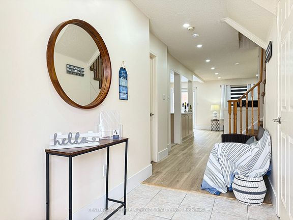 This Beautifully Renovated Freehold Townhouse Features 3 Spacious and Bright Bedrooms, 1.5- bathroom. Linked townhouse- with shared wall only on one side, providing advantage is ease of moving lawn equipment and outdoor items without going from interiors. Enjoy feel of semi detached with more privacy and less disturbance from neighbours. Brand new flooring & 6" baseboards (2025), Upgraded Kitchen with Quartz Counter Top, Brand New Sink and Faucet (2025), Elegant Pot Lights (2025) through out the House Creating a Bright and Welcoming Ambiance, New Blinds, New Stainless Steel fridge, New Concrete Work in Front. Open concept Layout Ideal For Entertaining and Everyday Living. Private Backyard Comes With New Pergola, Perfect for Outdoor Relaxation or Family Gatherings. Close to Many Grocery Stores, Gym, Excellent Schools, Shopping Malls, Dining and Entertainment. Walking Distance to Parks, Trails, and Recreational Facilities. Easy Access to Public Transit and Major Highways, Ensuring a Seamless Commute. This move-in-ready home with its modern upgrades is the perfect place to call home with everything you need for comfortable living. Move in and enjoy!