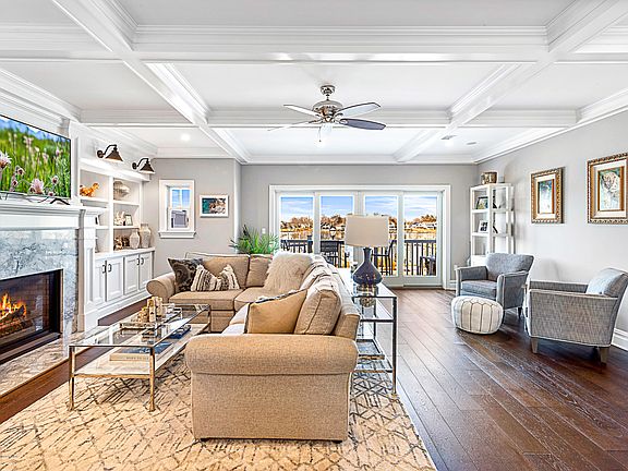 - RoomLivingRoomFeatures: Dec Molding, Floor - Wood, Fireplace - Gas, Sliding Door, Fireplace - Electric, Built-Ins