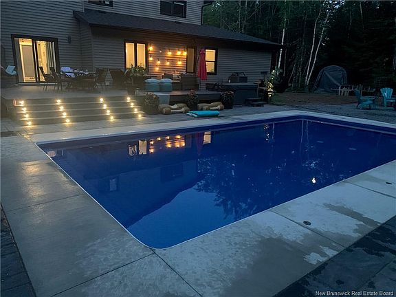 Escape to your DREAM HOME without losing the convenience of the city. This STUNNING 2 story contemporary style home sitting on a beautifully landscaped acre plus lot. Approx 10mins to Oromocto and 14 min to Fredericton. This home offers a unique combination of modern design, craftsmanship and beauty. Huge entryway with soring 2 storey ceiling, Main level primary bedrm,2 additional bdrms up and 1 in the finished basement(window may not be egress) & 3.5 bathrms. Custom Gourmet kitchen features real wood cupboards w frosted glass accents, centre island, multiple pantries & a walk-in coffee station or bar area. Home is fully equipped w central air, heating & cooling. Master bdrm is large & bright w double sided walk-in/walk through closets. Luxurious ensuite bathrm complete w 2 person therapeutic air jet tub, double sinks, make-up vanity, lg 2 person tile shower with body jets. The garage is a true double & can accommodate full size pickup w additional side bay door. The backyard is an Outdoor Oasis. Enjoy your summer in the heated in-ground swimming pool, with4 deck jets, Clear Deck Solar blanket system to maintains a clean look. Stone patio surrounds pool, outdoor kitchen area & raised raw faced stone steps to a sitting area with a soft covered metal pergola. Unwind in the hot tub or host friends on the large 14x28 composite deck. Backyard is fully fenced and Front yard has an electric dog fence (collars included). Vendor is a licensed REALTOR® in NB.