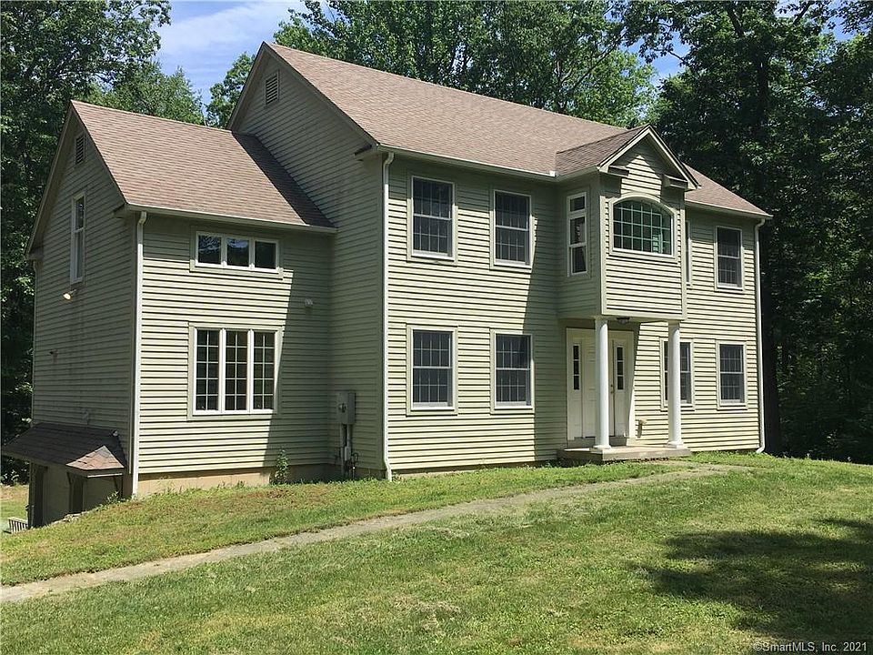 Set back on a private cul-de-sac, this lovingly maintained 4 bedroom, 2.5 bath Colonial is just minutes from schools and town resources. The inviting, open-concept main floor boasts a large kitchen with pantry and extra storage space, a dining area with french doors leading to the back deck and a family room with cozy brick fireplace. A formal dining room and living room with crown and chair molding complete the main living area. Upstairs offers a wonderful sunny sitting area, a full hallway bath and four nicely sized bedrooms: an ensuite Master with his and her closets and three additional bedrooms each with ample closet space. Freshly painted interior with gorgeous refinished hardwood floors. Septic has been serviced and chimney flue cleaned. This family-centric house is ready for you to call home. An easy to finish, heated walk-out basement leads to a level and private back yard- with room for a pool! As is. Estate.