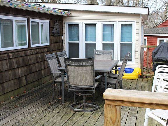 Mint Move-In Ready 4 Bedrm Cottage in Woodcliff Park; Seasonal Use April 15 to October 15; Lots of Indoor and Outdoor Entertaining Space; Separate large den/TV room or dining room; Large Deck; Private Community Beach and Playground for Children; Close to North Fork Attractions; Most Furniture Included in Sale; Cash Sale Only; Land is Leased Approx. $6,300 Annually.