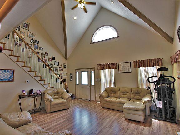 Main floor 100% handicapped accessible roll in shower. New flooring thru out main level. Jack & Jill bath with dressing room upstairs. Full basement. Concrete driveway with parking for main level ramp. Beautiful wrap around porch sitting on private lot with plenty of room. Awesome views from all sides of home.