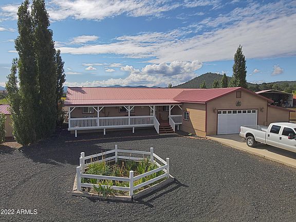 Come experience true four seasons in this custom 2,166 sq. ft., 3 bedrooms, 2 bath turn key, income potential horse property mountain home at a cool 7,000 feet. The home has a very open concept and vaulted ceilings on the edge of the Apache Sitgreaves National Forest. You have long range views in all directions. Warm and inviting interior with thick wood plank flooring and tongue and groove ceiling. Completely fenced and cross fenced. The entire property has underground power and water to every pasture, stall and building. 170 x 120 arena, 50 ft. round pen, 4 covered stalls, 5 pastures, public and private tack rooms, hay storage garage and much more. This ranch was built with 30 years of experience in the horse industry and no expense was spared. Call Beth for a feature sheet today