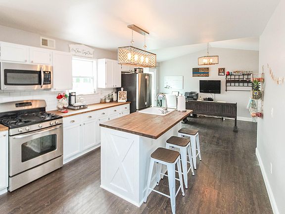 Walking into vaulted ceilings gives this open concept home and even bigger feeling. Recently updated farmhouse style kitchen is perfect for entertaining. The center island is great for everyday living and makes this space the heart of the home. The unfinished basement is ready for you to finish the way you want it. The large deck is a nice spot to hang out with plenty of room to run around in the fully fenced yard. Newer features include vinyl plank flooring, water heater and roof.
