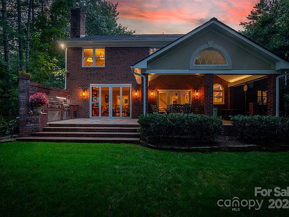 Discover the enchantment of this immaculate estate home. Located in a coveted, walkable, bikeable South Asheville community where homes rarely become available. Your wooded backyard oasis with it's outdoor kitchen and calming fountain is bordered by a 500 acre private school ensuring privacy and tranquility. This ideal location is close to all conveniences shopping, schools, parks, medical and Asheville airport (but not on the flight path). You will marvel at the details from the foyer chandelier that electronically recesses for cleaning, to the stunning stained glass accents (which can be removed if desired). The floor plan with it's split staircase & spacious bonus areas create a plethora of options to customize your living space. Pride of ownership is evident as every detail of this home has been thoughtfully cared for to the highest of impeccable standards. Your opportunity to make your family memories in this happy home awaits in this friendly community and low County taxes too.