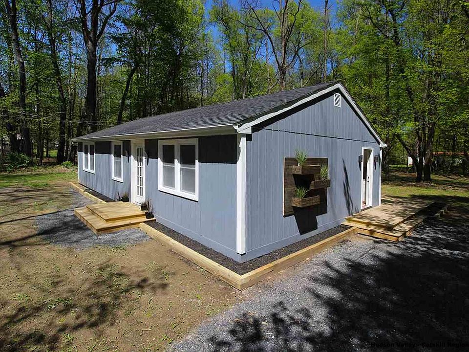 Gently tucked away on a private lot here in the quaint Hamlet of Tillson, just ten minutes from the Village of New Paltz, stands a contemporary single-level ranch. Flawlessly nestled amongst a clan of mature trees that have been around longer than you or I, this modern yet warm and inviting oasis awaits your arrival. Upon reaching the driveway, you'll notice the subtle yet dramatic touches that lend this home to feel natural in its stance. Tip top to the very bottom, extreme care and craftsmanship has been implemented in certainty for a long life and quiet enjoyment for years to come. Only beginning to touch upon the topic, updates are as follows: 30yr Architectural Roof, Siding and Underlayment, efficiency doors and windows and a sprawling craftsman deck. Once inside, you'll marvel at the modern amenities and open floor plan. Stainless steel high-end appliances decorate the kitchen leading into the dining room adjacent to the vaulted living room. Clean recessed accent lighting awaits the ability to showcase a broad spectrum of creativity. Installed and included are as follows: Digital and Smart Compatible washer and dryer, 5-burner grill-top propane stove and vented microwave. The entire home has been re-plumbed with the efficiency of pex and a state-of-the-art Navien on-demand combination hot water and boiler unit. Flawless corners and trim are ready for your personal touch. Turn-key does not begin to describe the functionality and practicality of this home. Whether you're looking for a weekend retreat or first-time home... you can look forward to years of use without the worry of maintenance.