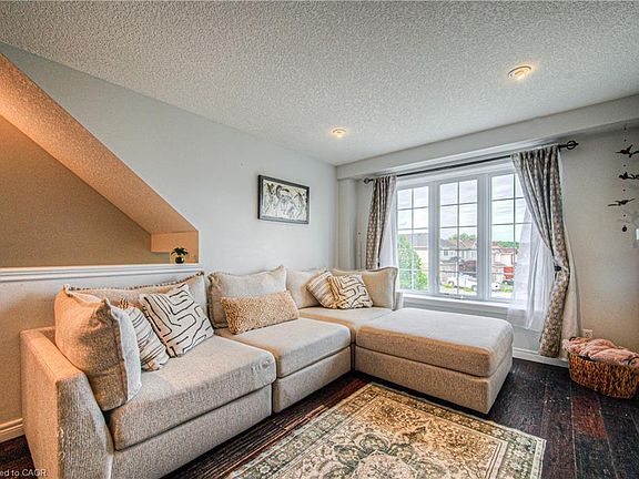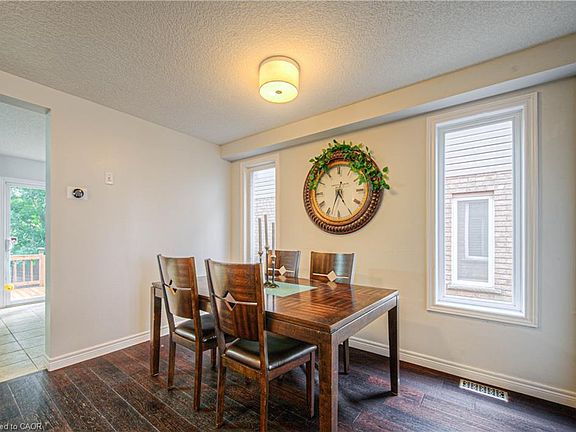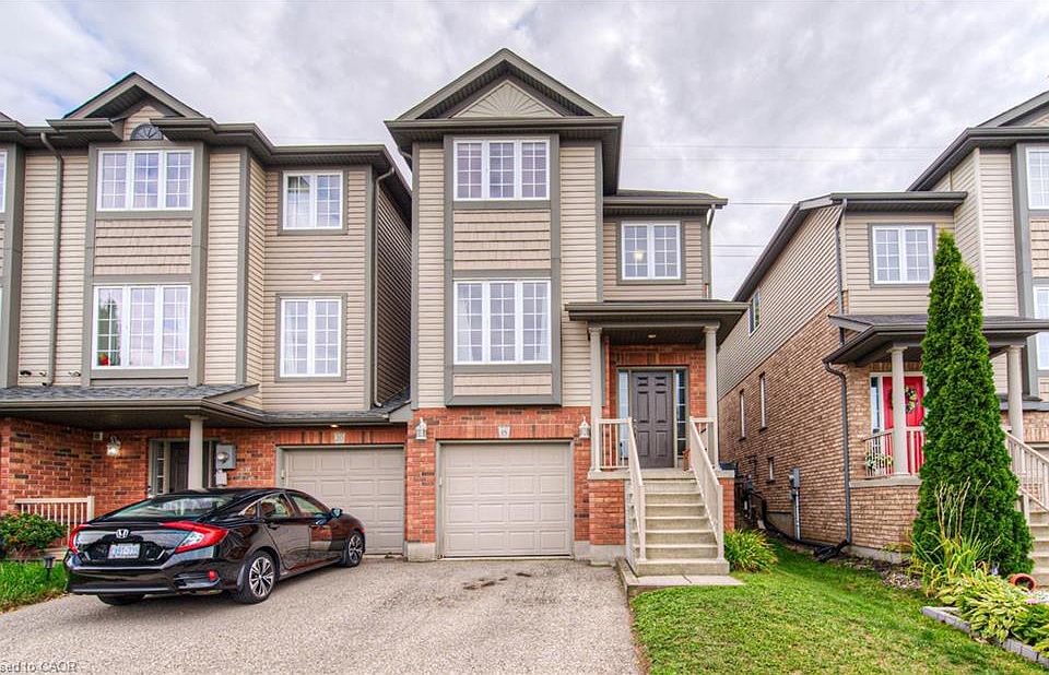 This spacious 3-bedroom, end-unit townhome is located in a newer residential area of Kitchener West. This home features a bright living room with an electric fireplace, a dining room, and a roomy 17'3 x 9'7 kitchen with plenty of counter & cupboard space along with a built-in desk. Sliding doors from the kitchen lead out to a deck, a fully fenced rear yard with mature trees. The property backs onto open space, so no rear neighbours. Upstairs, you'll find three bedrooms, with the primary bedroom offering ensuite privileges to the 5-piece family bath. The basement is fully finished with a recreation room and a 4-piece bath, and it also provides access to the single-car garage. For added convenience, there's main floor laundry (washer & dryer purchased 2024). The central air conditioning was installed in 2025. This home is minutes from Kitchener’s new indoor recreation complex at the RBJ Schlegel Park. RBJ Schlegel Park is also home to pickleball courts, cricket pitches & soccer fields. You are also minutes from shopping plazas located at Huron Rd & Fischer-Hallman Rd featuring fast food eateries, casual dining, drug store, Longo’s Groceries & more. View Virtual Tour above for a closer look. Virtual tour & floor plan provided by iGUIDE. Measurements provided on this listing to take precedence over iGUIDE.