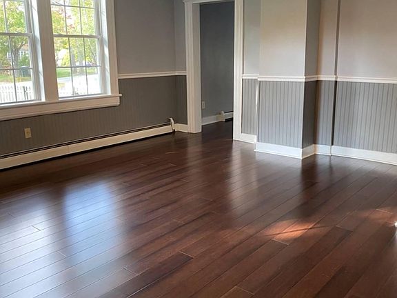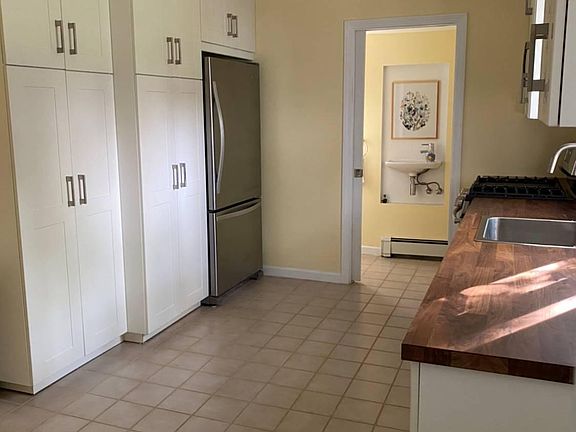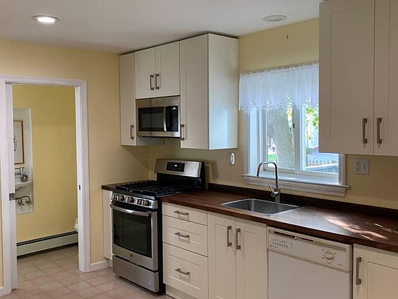 Located in a quiet cul de sac within walking distance of train station, downtown shopping and restaurants. Totally renovated 11/2 bath and kitchen with new appliances including washer and dryer. New laminated flooring downstairs in this half duplex with fenced in yard and off street parking paved for two cars. Two upstairs bedrooms with an additional space for home office with attic storage. 60 miles from NYC with nature trails nearby. Owner maintains lawn and exterior. Renter pays all utilities including gas, electric and water. Renter is responsible for snow removal. First, last month rent and security deposit due at signing.