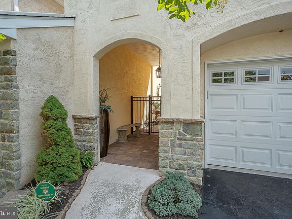 Once in a while, an absolute show stopper becomes available & this truly, is it! This lavishly appointed carriage home, located in the Courtyards of Cherry Creek, has all the bells & whistles that will make your home search come to an end. Situated on a premium lot, this magnificent McKee built Amherst model home has over 328k of builder options and over a million dollars (total) invested in the care, upgrades and overall elegant style that truly makes this property an absolute ONE OF A KIND. As you enter through the arched doorway & wrought iron gate, notice the delightful hardscaped courtyard which is so lovely & private. Inside the front door, you will be romanced by the cathedral ceiling, rich cherry hardwood flooring as well as an adjustable height chandelier. The layout here is warm & welcoming as you enter into the formal dining room with elegant crown molding & handsome lighting. Beyond the dining room, you will notice the built-in floor to ceiling cabinetry which offers space to showcase china or extra buffet space for entertaining/storage. The gourmet eat-in kitchen is customized beautifully to blend both functionality as well as style with antique white 42” cabinetry, GE Profile appliances, an expansive center island, customized mosaic & copper backsplash detail above the range, full pantry cabinets & wine fridge. The large Living Room, which is graced by a gorgeous floor to ceiling gas fireplace, features custom window treatments, an abundance of natural sunlight also has access to an elevator, such a special feature to differentiate from other homes in the area. Be sure to notice the expanded trex deck outside, perfect for entertaining or morning coffee. Upstairs the luscious Primary bedroom with en-suite features a separate area that currently serves as a dressing room but would be versatile enough to serve as a home office or gym. There are 2 walk-in closets here as well as access to the elevator. 2 other bedrooms are located at the opposite end of the home, both feature good closet space, custom window treatments & overall great space. There is upstairs laundry (included) located on the floor with upper and lower cabinetry & hanging rack. The walk out lower level has been customized with a grand fireplace with cherry mantle, a spectacular entertaining wetbar, fully stocked with a stylish copper sink, dishwasher & fridge. There is a home office down here, extra space for storage. There is a full bathroom here for convenience, wonderful for visitors. Outside you will find an upgraded hardscape patio, a hot tub and a spiral staircase added during ownership. HOA services include: trash, snow removal, roof, gutters, downspouts and common area landscaping The neighborhood of Cherry Creek & the Courtyards offers approximately 80 acres of lush landscape, tranquil creeks and lovely walking trails. Home is conveniently located near Brinton Lake shopping center, amazing Chester County cultural attractions & fabulous eateries. Its close proximity to I95, 202, Kennett Square, Main Line Health facilities & Delaware’s tax free shopping makes living here most convenient. Roof replaced in 2023 & over 45k in stucco remediation completed. Make your appointment today.