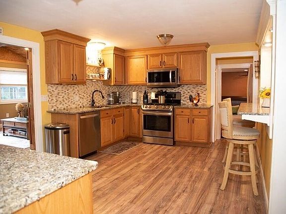 Welcome home to this move in ready updated Ranch. This home offers 3 generous bedrooms, 2 updated baths, fully updated spacious kitchen with modern appliances, a/c for those warm summer days/nights, new low maintenance flooring throughout. This home sits on an over 1/2 acre corner lot w/sprinklers installed in the front, invisible dog fence and whole house generator ready. Plenty of parking for guests and toys. Huge 28x48 heated 6 car garage offers endless possibilities. This home is a must see!!