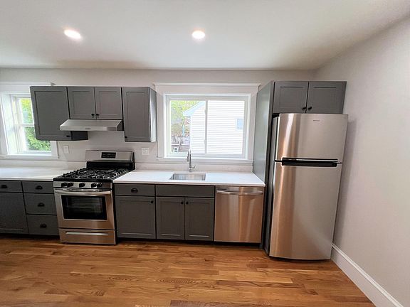 Available immediately. Newly renovated 2.5 bed (office/den) in Oak Sq. Fully renovated eat-in kitchen with stainless steel appliances and granite countertops. Updated baths. Freshly painted. Full living and dining room with built-in cabinet. Front and back porches. Off-street parking available. Free laundry in building. Close to bus lines 57, 64, 501/503. Close to area amenities, shops, parks, YMCA, restaurants, bars, I-90 and Storrow Dr. Water/sewer included. Tenants pay gas and electricity, internet/cable.