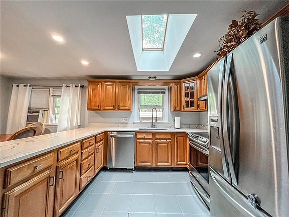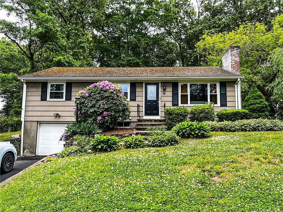 A beautifully stoned staircase leads you to the entrance of this fantastic home. Gleaming hardwoods, a charming fireplace, and plenty of natural light are just some of the features in the spacious living room. A spotless kitchen with updated appliances is open to both dining and living spaces. A stylish full bathroom is down the hallway alongside 3 bedrooms. All 3 bedrooms have plenty of closet space. The finished lower level adds even more space to this home! An office nook, a modern wet bar area, and a large family room and full bathroom allow for great use of this additional space. Lower level also features a finished laundry room, and bonus half bathroom and walks out to the attached heated garage! In-law potential! Outdoor features include lush landscaping, an oversized patio, parking for five on this .45 acre lot. A great chance to live in a beautiful, move-in ready home in a fantastic neighborhood in Lincoln, RI!