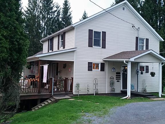 Single family home in private setting on dead-end street in small village of Arnot, PA surrounded by state forest lands. Includes extra corner lot and lot across from house. Four bedrooms, two baths, living room, dining room, kitchen, office, all in upper level, plus finished apartment in above-ground basement with one bedroom, one bathroom, kitchen and living area. Washer/Dryer/Ranges/Fridges/Microwaves included. Large, wrap-around deck.