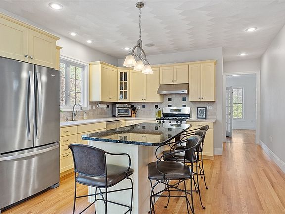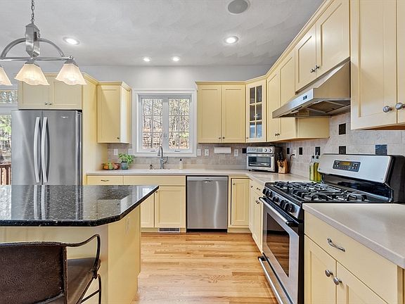 This charming Farmhouse Colonial located in a desirable Bolton neighborhood seamlessly blends timeless elegance with modern comforts. At the hub of this beautiful home is an enviable gourmet kitchen w/center island, stone counters, & stainless appliances flowing seamlessly into the striking stone fireplaced family room w/soaring ceiling & a wall of windows flooding the room w/natural light. Sliders open to the oversized composite deck offering views of the private backyard & abutting woodlands beckoning you outside on those warm summer days. Unwind in the dreamy primary bedroom suite w/generous walk-in closet & indulgent spa bath. 3 additional bedrooms and full bath complete the 2nd level. Amazing expansion potential in the unfinished lower level. Enjoy distinctive millwork, hardwood floors, home office, & convenient location near conservation trails, orchards, commuter routes, & vibrant downtown Hudson.