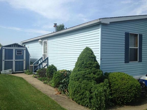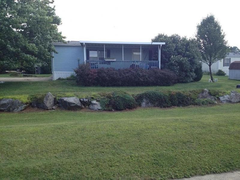 Private property with large covered deck in 55+ community. Open floor plan of main living area encompasses living and kitchen areas - 25 x 16.6. New carpet in living room and hall. Lot rental of $339.00 a month includes garbage removal and grass cutting. Park approval is required.