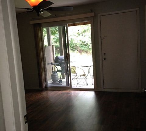 1st floor condo with 1 bedroom and 1 bath. Open and spacious, new flooring throughout; Ceramic tile in the kitchen and bath. The bedroom opens up to slate patio and faces beautiful backyard that backs up to the woods, which makes for a nice, private setting. Fenced in courtyard in the front of the unit. Central air, washer/dryer, dishwasher, plenty of closet space. Facilities including large park, swimming pools & tennis courts. Short walk into New Hope, where you can enjoy great shopping, restaurants and cafes and a lot of charm. Non smokers only please. Cats or one small dog considered.