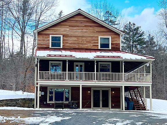 Charm meets convenience in this well- maintained, 3 bedroom colonial! Nestled on a quiet road, in the village of South Newfane, enjoy watching the seasons change with the year-round view from the spacious covered porch! Before even entering the home, you will be welcomed by fruit-bearing apple trees, a quaint pond, and plenty of garden space all while enjoying the sounds of the Rock River below. A partially finished walk-out basement hosts a mudroom, a large office/den, and a clean and organized utility area. The main level has a sunny and bright, open concept dining room/ kitchen area, with newer appliances, and multiple access points to the covered porch, as well as a cozy living room accented by a Vermont Castings Woodstove. There is a 3/4 bath on the main level, with a LARGE walk in shower. The primary bedroom, with cathedral ceilings, and two other capacious bedrooms make up the upper level, along with a full bath. Additionally, there is a large barn/garage/ with a loft, heat, electric and its own septic. This home should definitely be added to the “let’s see it” list! A short drive to Mount Snow, Brattleboro and of course a hop, skip and jump to beautiful Newfane Village.
