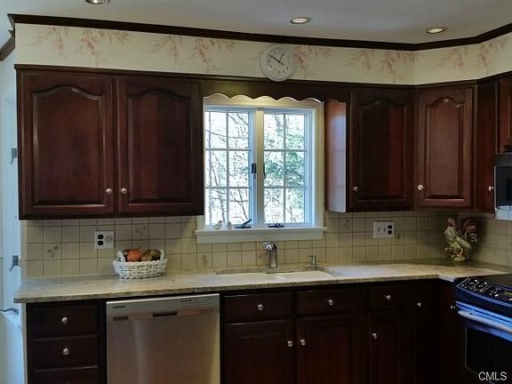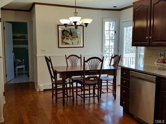 Fall in love with this Charming and Well Maintained 4 bedroom 2-1/2 bath Colonial on a quiet street in the Candlewood Lake area. The large yard offers almost an acre of wooded privacy and borders 5 acres of open space. Watch the sunset on your deck which has a convenient retractable awning. Enter through the French doors and enjoy the comfortable and open living room and dining room. There is a master bedroom with ensuite bathroom, walk-in closet and built-in dressers. The other three bedrooms are spacious with nice closets. The cozy wood stove in the family room will keep you toasty warm in winter, and the newly installed Central Air (July 2016) will keep you cool in the summer. There are hardwood floors on the main and upper levels. Lots of storage space, even in the attached 2 car garage and workshop, which have plenty of built-in cabinets. Entertain your family and friends in your finished, sunny lower level recreation room that has a private entrance to the backyard. Extensive Tree work done in October 2015. New electrical upgrade October 2015. This is truly the home that you have been waiting for. It is waiting for your family to call it home!