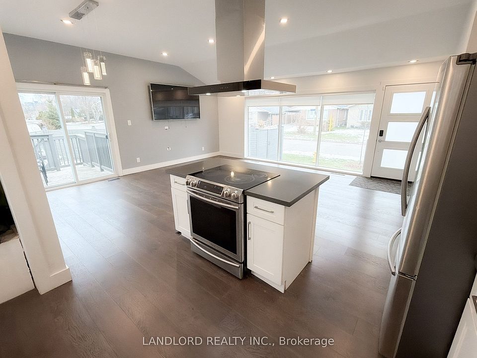 Vacant move in ready professionally managed unfurnished main floor of detached bungalow. Tandem parking included (one carport, two driveway). Layout with expansive open plan kitchen/living room that walks out to exclusive use side yard and deck, directly accessed via private front entrance. Three bedrooms with built in closets sharing 5pc bathroom. Features and finishes include: engineered wood flooring throughout and ceramic tile bathroom flooring, pot lights throughout, partial cathedral ceilings, stone countertops, tile backsplash, stainless steel appliances, kitchen laundry centre, upgraded light fixtures, island range with chimneystack extractor, optional wall mounted LG tv, window coverings, and more! || Appliances (all Samsung): slide in range, side by side bottom freezer fridge, microwave, dishwasher. || Utilities: tenant pays 2/3 of electricity, gas, waster/waste monthly as Additional Rent. || HVAC: Gas forced air heating and central air conditioning. Basement already tenanted to quiet respectful tenant long term.