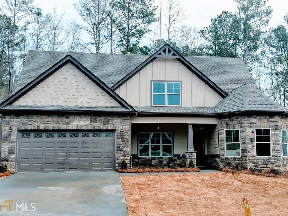 Dansby C plan with 4 bedrooms, 3 baths. Master and one other bedroom on main. Two bedrooms and full bath upstairs. Kitchen with island is open to vaulted great room. Formal dining room. Upgraded cabinets and hardwood flooring. Covered front and back porches. Fully sodded lawn.