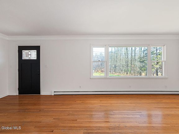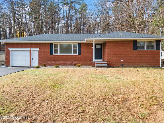 Colonie one-level updated brick ranch is turn key and ready for its next new owners. This updated 4-bedroom, 2 full bath home features: fresh paint, updated kitchen with backsplash and motion activated under cabinet lightning, newer roof, refinished original hard woods, crown molding, chair rail, wash and dryer hook up in first floor bathroom and basement. Boiler recently inspected and maintained. BONUS: Expanded living space in the finished basement with egress you will find the 4th bedroom, new carpet, full tiled bathroom, supplemental wood stove, bar, private entrance and exit to garage, storage galore, and more. The spacious backyard leads to a private wooded setting with walking trails in the rear. Newly paved driveway.