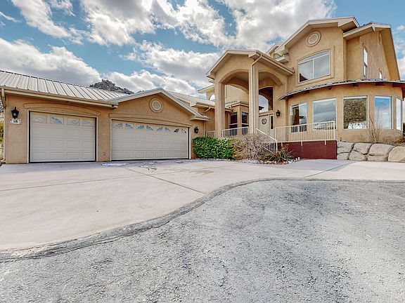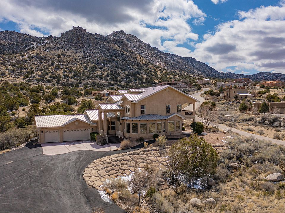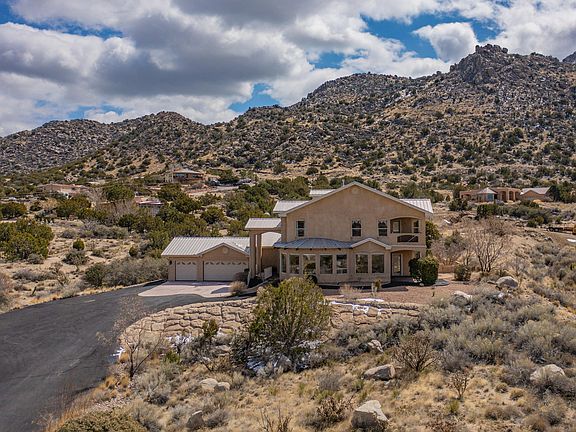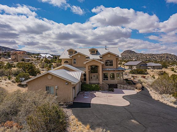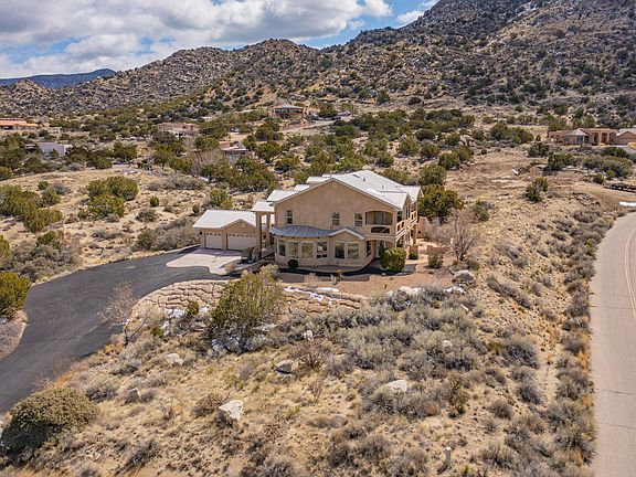 STUNNING 2-Story Home in Desert Mountain Estates! Breathtaking city and mountain views! Gorgeous kitchen with rich granite countertops and custom wood cabinetry. You'll love the spacious feel of this home where you can relax on the front patio, backyard or the deck off the master bdrm. This home is perfect for large or small gatherings conducive to an easy flow of people with lots of parking and the circular driveway. 4 bdrms plus an office/extra bdrm for children and guests. Out back, enjoy the lighted waterfall and kiva fireplace on those starry nights. Upgrades include new carpet, automated blinds, refrigerated a/c units and furnace, in-home humidifier. All this on 1.39 acres. Easy access to I-40, 10 min to Uptown or Sandia Labs. Wonderful family friendly neighborhood and no HOA Fees!
