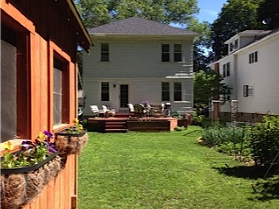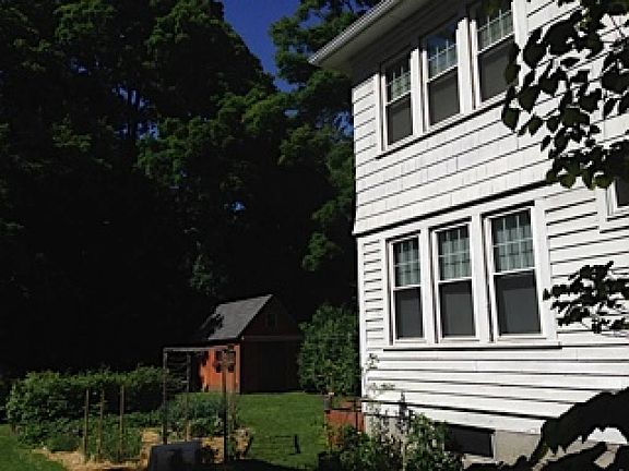 The best of both worlds: in-town and country living! Two sunny three bedroom apartments on a quiet tree-lined street is just a few minutes distance to the Academy of Music and Smith College, yet it features a spacious backyard, organic vegetable gardens, and a forest backdrop. Features include newly refinished oak hardwood floors throughout, a large open living room and dining room, front porch, shared storage space in the basement, attic and detached shed, and off-street parking. The two unit home has been newly renovated with a high efficiency gas boiler and new radiators, blown-in insulation, and energy efficient windows which keep heating costs low and the condo cool in the summer. Other renovations include new electrical upgrades and a new 40-yr roof.