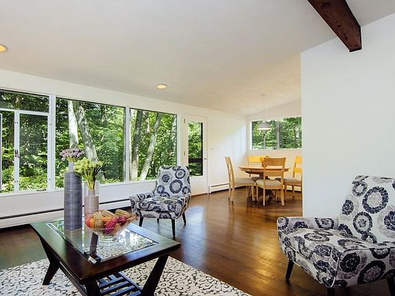 Presenting this one-owner Mid-Century-Modern home in the Turning Mill neighborhood privately sited on a verdant 3/4 acre lot. Enjoy a sought after open floor plan with cathedral ceilings, and soaring windows offering unobstructed natural views. The upper level has three bedrooms including a master with adjoining half bath and additional full bath. Main level has an open living room, dining area and kitchen. The finished lower level has flexible options for either a 4th bedroom, family room or office space and has a half bath with laundry. The home's new owners will have plenty of fun outdoor activities to explore this summer with optional membership to the Paint Rock Pool, and conservation land with 15 miles of walking and biking trails at your doorstep. This home is in need of updating but provides an unspoiled original canvas to create your own mid-century masterpiece.