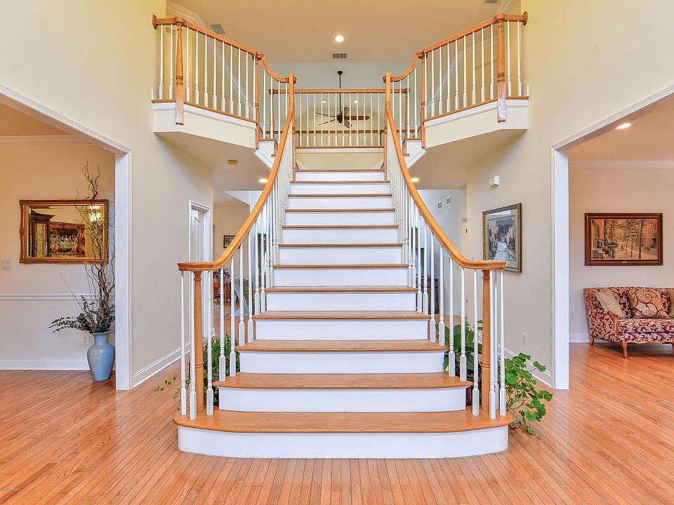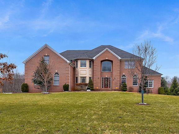 Stunning 5 bedroom, 4.5 bath estate home located on 4 private acres on a cul de sac. Beautiful views from the deck. Open concept kitchen and grand room. Massive first floor office which could easily be renovated into a first floor bedroom. 2 story foyer with grand staircase. Gleaming hardwood floors surrounds your over-sized dining room. Expanded basement with movie theater and gym along with an access point for outside fun. Truly move in ready condition and immaculately maintained.