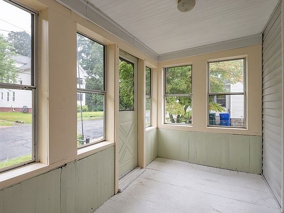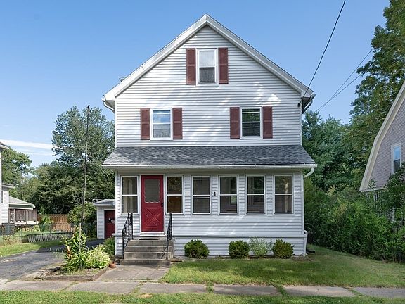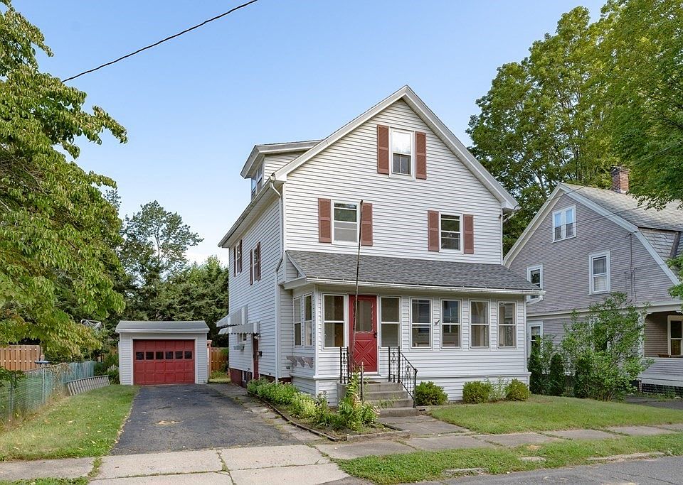 Close to Childs Park and convenient to both Northampton &Florence, this 3-bedroom classic four-square home is waiting for you to make it your own. Newer gas furnace (2019), newer central air (installed during current owner's occupancy), newer house roof (2014), garage roof (2015) & completely renovated bath (2023). Newly refinished old-growth pine floor on 1st level. Small fenced back yard, enclosed porch (with screens) in front, & a detached one-car garage with bonus work/storage area. Upstairs, one bedroom has a cedar closet with access from both the bedroom and the hallway. A small 4th room on second floor could be a cozy office or reading area, from which you can head up to the paneled attic, perfect for storage or conversion to living space. A side door near the garage will take you down to the basement or up to the kitchen. Current owner also had a basement waterproofing system installed; there's tons of great storage space there too. Showings start right away.