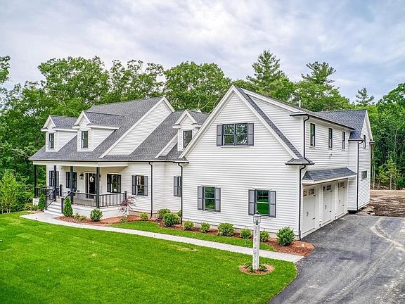 NEW CONSTRUCTION-This custom built farmhouse style home will take your breath away. Located on a cul-de-sac perched atop a beautiful subdivision on Swan Pond feels like your own private retreat while being less than 30 min to Boston and 10 from town common, schools and shopping. A welcoming farmers porch enters to a grand foyer and sun drenched living room with cathedral ceiling and double glass sliders leading to enormous patio and yard ideal for outdoor entertaining. The farmhouse style kitchen has gorgeous white cabinetry, SS appliances and quartz countertops. Hardwood throughout first floor. A spacious family room has sliders leading to the patio making it a perfect space for relaxing or hosting family and friends. The versatile floor plan includes an additional two rooms on 1st floor for a den and home office and huge walk out basement. Upstairs are 4 spacious bedrooms, walk in closets and stunning master suite. On almost 5 acres of land this is not just a home but a destination!