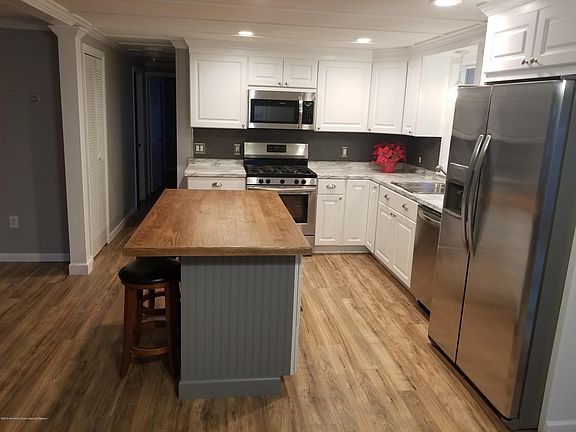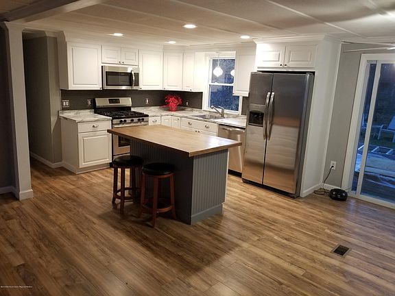 Beautiful cottage on a quiet street in a park like setting of a 55 and over community. Featuring an open concept living room, dining room, and kitchen, beautiful columns defining the space. The kitchen has new cabinets and counter top w/ deep country sink, new stainless steel gas range, refrigerator, dishwasher, and microwave. The dining room has a sliding door to a large deck, beyond the deck is a wooded area backing up to horse stables creating a secluded country like setting. The home has two bedrooms with large walk-in closets and laundry. Laminate flooring through-out the home, bathroom and powder room have ceramic tile and are completley renovated. The newer heating system is natural gas forced hot air with central a/c. The home has a new textured shingle roof MOVE IN READY!